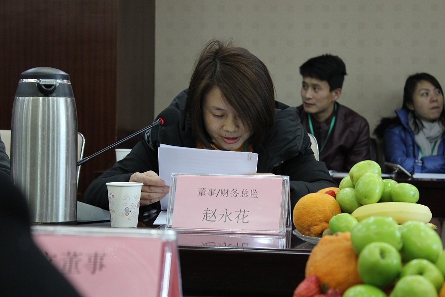 (圖為董事兼財(cái)務(wù)總監(jiān)趙永花作財(cái)務(wù)工作報(bào)告)