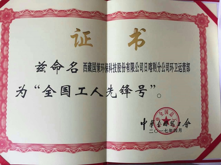 日前,全國總工會(huì)召開“五一”新聞發(fā)布會(huì), 通報(bào)了一批“2017年全國工人先鋒號(hào)”。西藏國策環(huán)??萍脊煞萦邢薰救湛t分公司運(yùn)營部全體成員在日常工作中勞心勞力、風(fēng)雨無阻、踐行無私奉獻(xiàn)的城市“美容師”精神,被授予“2017年全國工人先鋒號(hào)”,是我司首獲此殊榮。