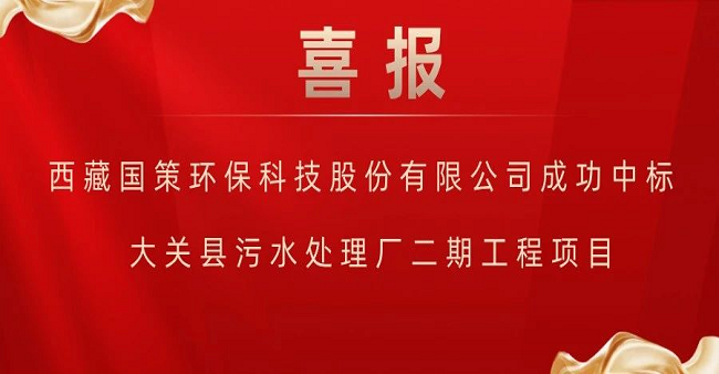 國(guó)策環(huán)保成功中標(biāo)大關(guān)縣污水處理廠二期工程(二次)BOT項(xiàng)目