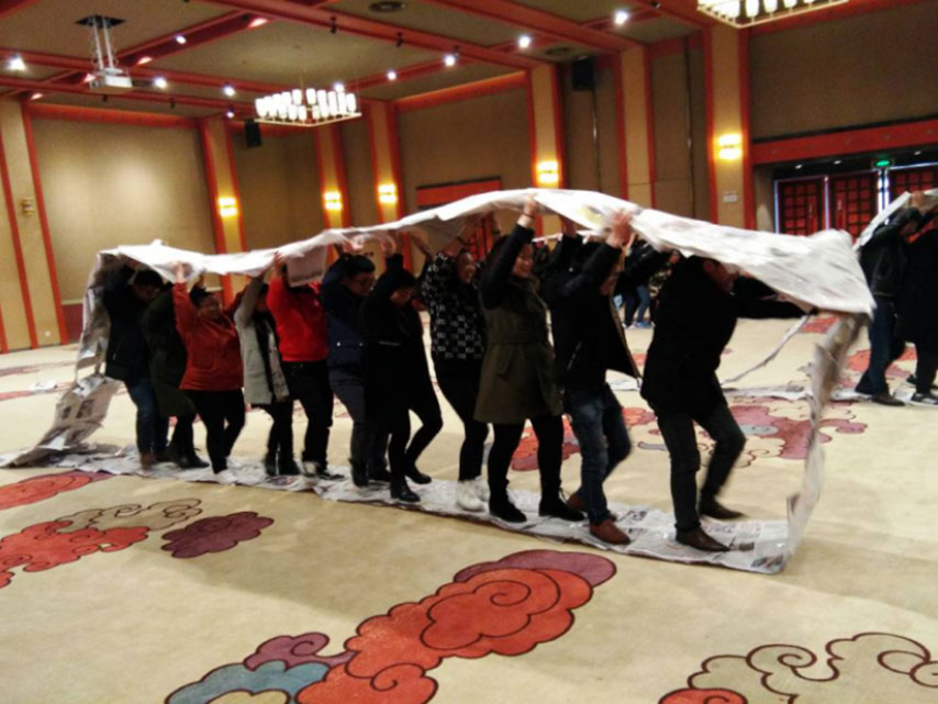 (圖為團(tuán)隊拓展活動“齊眉棍”)