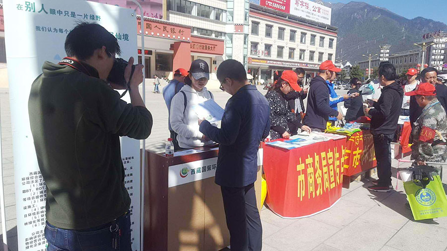 2018年6月5日西藏國策環(huán)??萍脊煞萦邢薰玖种シ止緟⒓恿种ナ协h(huán)保局組織的“美麗中國,我是行動者”世界環(huán)境日宣傳活動,我林芝分公司以環(huán)保宣傳資料,環(huán)保知識展示牌,向社會公眾宣傳環(huán)保知識和互動,活動中林芝市政府領(lǐng)導(dǎo),對我分公司的環(huán)境衛(wèi)生宣傳工作表示肯定和贊賞,國策環(huán)保呼吁:環(huán)保從點滴做起,共享美麗林芝 !