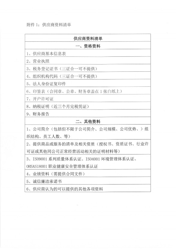 1、擬入庫供應商須根據公司要求提供相關資料,相關資料經公司審核后方可入庫。
