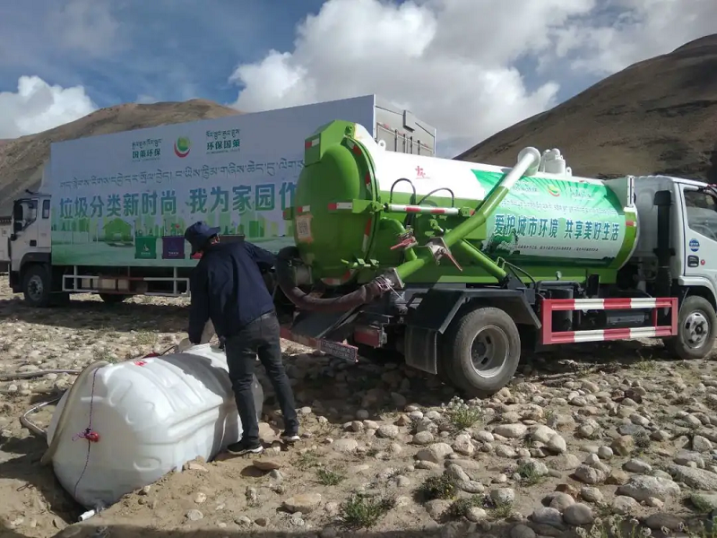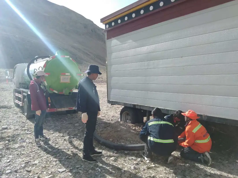 每隔一段時間,國策環(huán)保相關(guān)工作人員便會定期對這16個公廁的排泄物進(jìn)行清理,能原地處理的便用吸污車進(jìn)行現(xiàn)場處理,達(dá)到排放標(biāo)準(zhǔn)后排放到附近河里,不能現(xiàn)場進(jìn)行處理的則會將其運(yùn)送到定日縣垃圾填埋場進(jìn)行填埋處理。