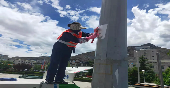 同時,山南分公司還調(diào)配了15名員工、1輛高壓沖洗車、1輛灑水車、1輛洗掃車、1輛多功能沖洗車組成了體育場臨時清洗隊,對體育場垃圾桶、電樁小廣告、周邊雜草以及地面等進(jìn)行了集中清理,通過采取高壓水槍沖洗和人工擦拭相結(jié)合的方式,體育場周圍環(huán)境及設(shè)施煥然一新,顯露“本色”。