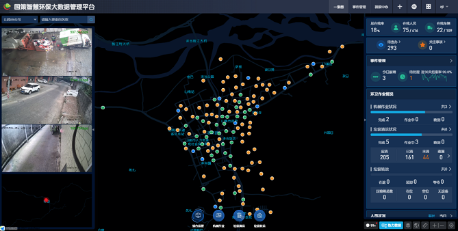 國策環(huán)保在投入機械化同時配套完善了智慧環(huán)保平臺建設,以感知設備、智能終端等構建的物聯(lián)感層與智慧環(huán)保平臺共同發(fā)揮了對環(huán)衛(wèi)各要素等進行全程實時管控和作業(yè)優(yōu)化,國策各分級指揮中心實現(xiàn)了對工作人員的精準調配,提高了工作效率。與此同時來自于甲方對質量的監(jiān)管及公眾的投訴建議與國策智慧環(huán)保保持高效互動,更進一步改善城市公共環(huán)境質量。