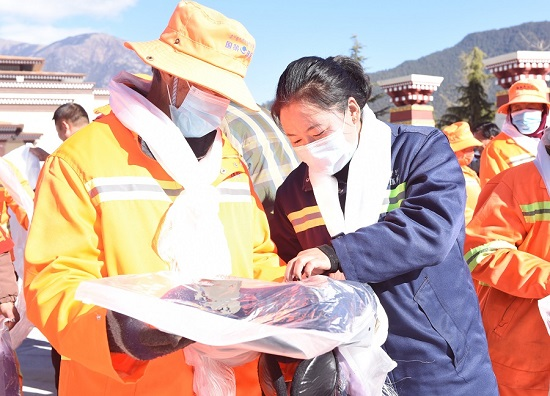 1月7日,為表達(dá)對(duì)國策一線環(huán)衛(wèi)工人的關(guān)懷和祝福,林芝市慈善總會(huì)在工布公園工布廣場開展了“寒冬送溫暖 致敬城市美容師”送冬衣活動(dòng)?;顒?dòng)現(xiàn)場,市慈善總會(huì)工作人員為50名環(huán)衛(wèi)工人敬獻(xiàn)哈達(dá),并送上慰問冬衣。